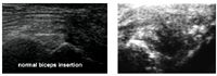 Bicipital tenosynovitis is an inflammation of the biceps brachii tendon and its surrounding synovial sheath. The etiology of bicipital tenosynovitis is either direct or indirect trauma to the bicipital tendon or tendon sheath. Direct trauma due to repetitive injury may be an inciting factor and result in partial or complete tearing of the tendon. Indirect trauma secondary to proliferative fibrous connective tissue, osteophytes or adhesions between the tendon and sheath limit motion and cause pain. It has been hypothesized that thickening or mineralization of the supraspinatus tendon causes a secondary mechanical bicipital tenosynovitis. Radiographically, bone resorption at the supraglenoid tuberosity is characteristic of chronic strain at the origin of the biceps tendon.