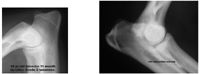 Forelimb lameness can be a diagnostic challenge in the athletic dog; often the lameness has been treated for months with no improvement. The only abnormal physical finding may be the observation of Grade 2 or Grade 3 lameness. The source of lameness may be attributed to soft tissue injury, bony injury or a combination of both. In the active adult dog the most common cause of latent forelimb lameness can be attributed to pathology in the elbow and to injury of the active and passive shoulder restraints. In the author's experience, pathology in the elbow is regularly caused by occult microfracture/fragmentation of the medial coronoid process. There is no joint effusion, loss of motion, pain, or crepitus on physical examination. Radiographs are reported as normal or may show minimal subtrochlear sclerosis of the ulna. Fig 1