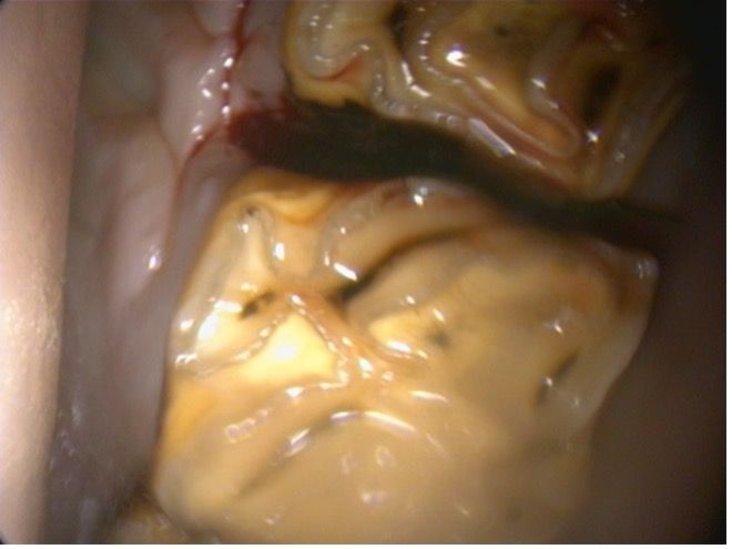 Often the veterinarian notices dental abnormalities during routine dental maintenance evaluation, warranting a thorough examination. A dental exam should be performed in adequately restrained horses with the help of standard equipment, including a mouth speculum, a head torch or other light source, an oral irrigator, dental probes and picks, lingual and buccal retractors, an intraoral mirror, and ideally an oral endoscope. Additional diagnostic imaging such as upper airway endoscopy, radiographs, or CT may be required in certain cases. Disease of the upper last 4 maxillary cheek teeth may be associated with sinus disease; therefore, further diagnostics may be helpful in establishing an adequate treatment plan.2,3