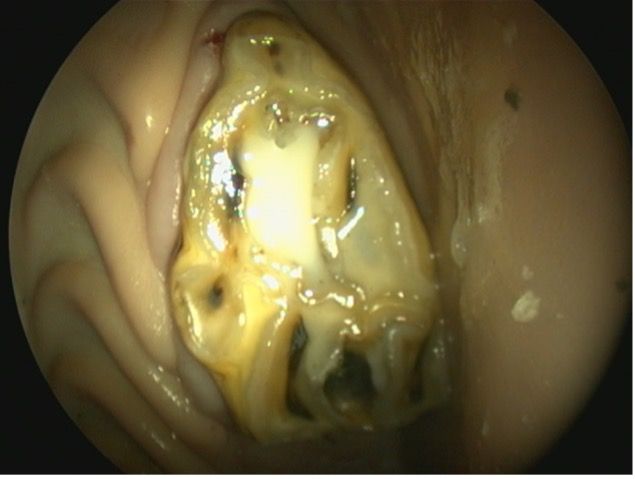 The main treatment for a fractured tooth associated with periapical infection is extraction. This is typically performed orally but, in more complicated cases, can necessitate a minimally invasive buccotomy, where an incision is made through the mucosa for the insertion of specialized equipment to elevate and extract the affected tooth. Oral extraction involves elevating the mucosa surrounding the affected tooth, spreading the affected tooth from each adjacent tooth, and breaking the periodontal ligament using traction and a molar extractor.8