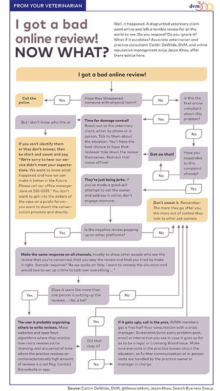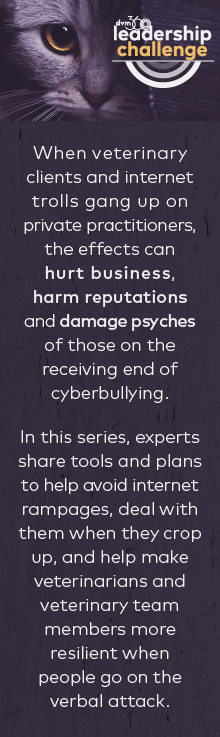 What if the complaints blossom into an extended online campaign against the practice owner, a veterinarian, a team member or the entire practice? Take action
