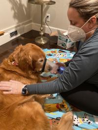 Lola, a 9-year-old golden retriever, was referred to UC Davis William R. Pritchard Veterinary Medical Teaching Hospital after she was diagnosed with oral melanoma