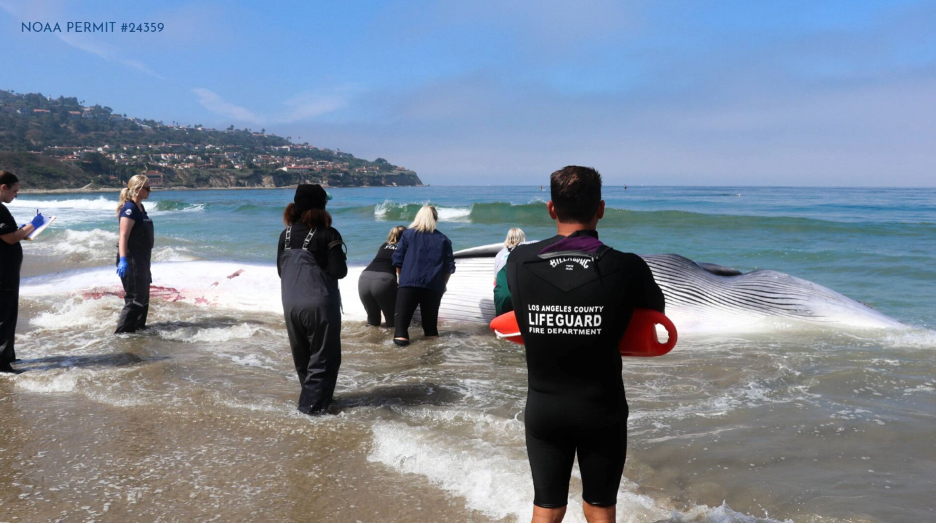 Southern California conservation organizations come together to determine cause of death for a beached fin whale