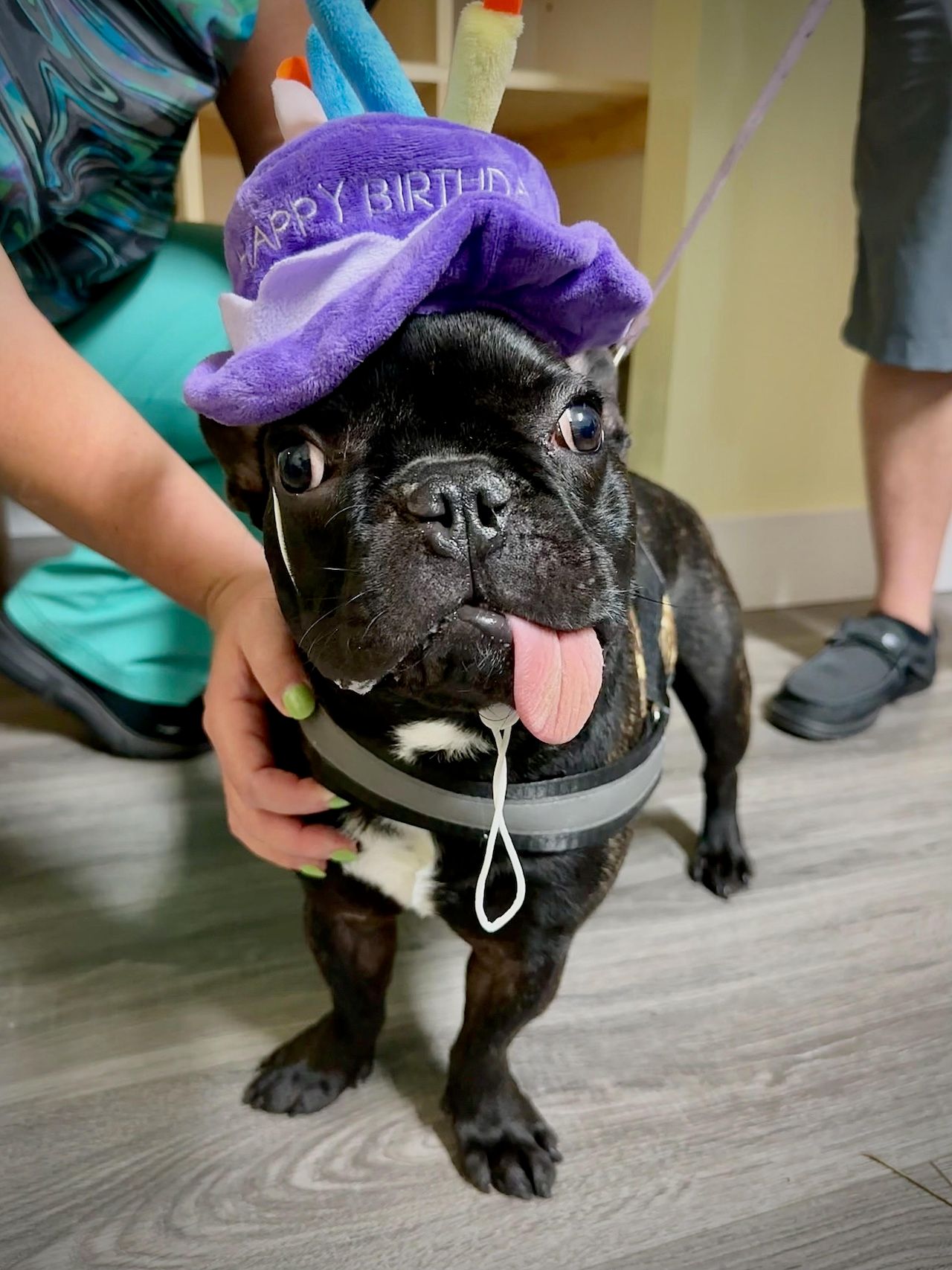 Tyson’s owners reported that the Frenchie still avoids hard, crunchy food and stiff, solid, or plastic toys, but he is able to eat water-soaked kibble and play with soft, plush toys. Tyson still checks in with Wright and the team at Cornell on a regular basis. He even recently celebrated his first birthday.