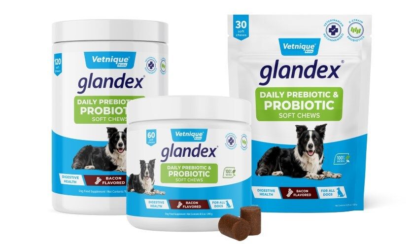 Vetnique, the company behind the anal gland supplement, Glandex, have announced an all-natural line of Glandex Daily Prebiotic & Probiotic Soft Chews. The soft chew products are bacon-flavored, vet formulated and recommended, and designed to significantly improve the digestive system, gut health, and immune functions for dogs of all ages.1