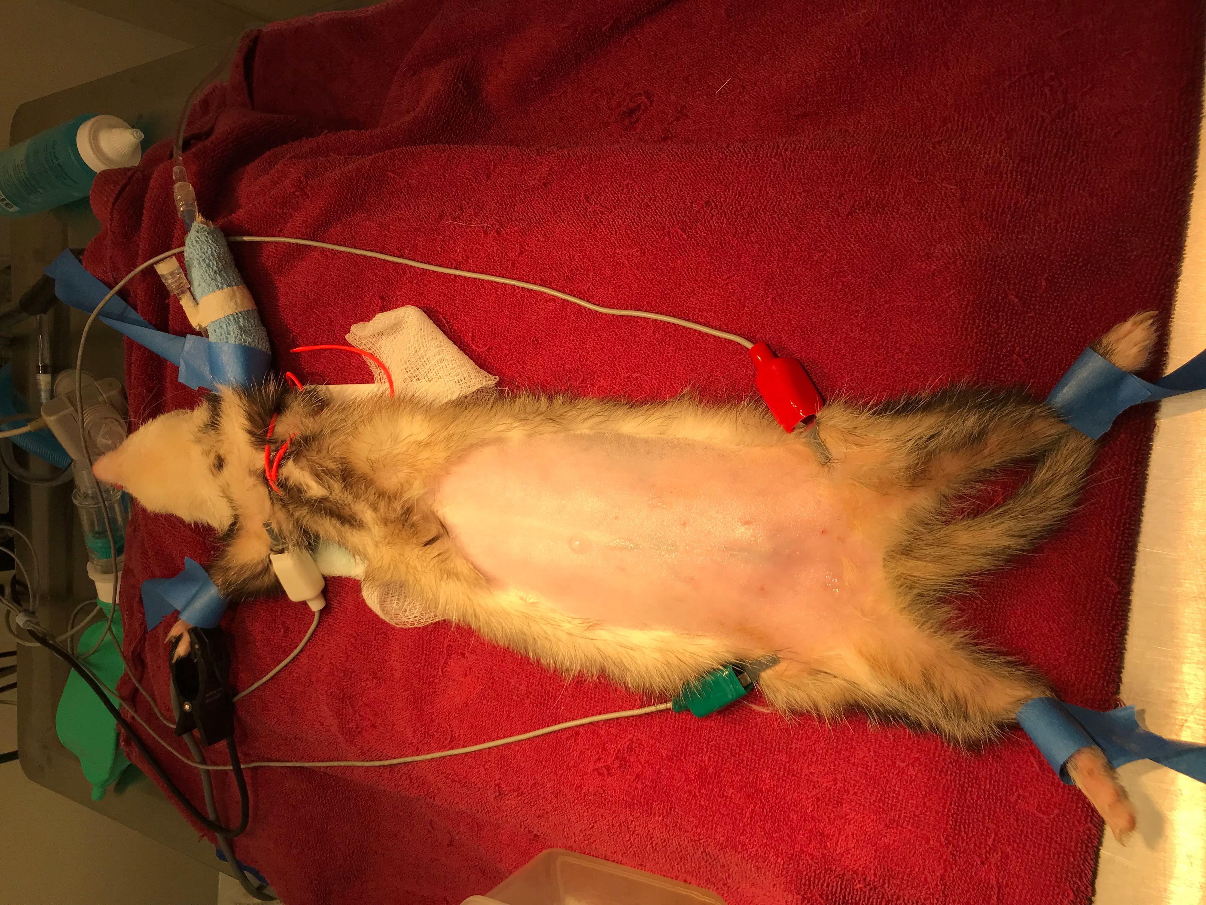 Olive, an approximately 1-year-old spayed female ferret presented with mild intermittent diarrhea, decreased weight, and lethargy, and her owner noted she had gone missing for several days prior to arrival. Initial treatment for her gastrointestinal (GI) symptoms was started, including subcutaneous lactated Ringer’s solution (30 mL/kg) and oral medications for GI upset. Broad-spectrum antibiotics consisted of enrofloxacin (10 mg/kg orally twice a day) and Clavamox Drops (12.5 mg/kg orally twice a day), gastroprotectants in the form of sucralfate (150 mg/kg orally 3 times a day), and a recovery diet to be offered due to lean body condition. She returned 2 days later for continued inappetence, diarrhea, and suspected fever. Olive was depressed but responsive, with an elevated temperature of 104.3 °F, tachycardia (>300 bpm), 7% to 10% dehydration, and a palpable abdominal mass in the right cranial abdominal quadrant.