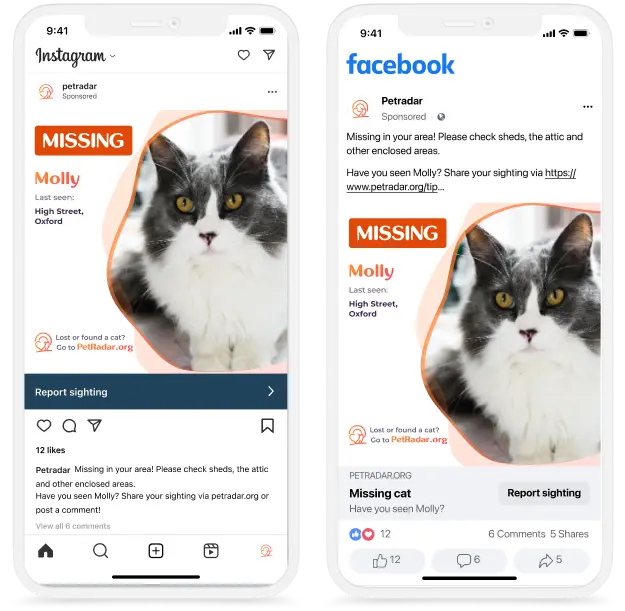 PetRadar (previously CatRadar), an online platform designed to help reconnect pet owners with lost pets, has expanded its offerings so that it now serves missing cats and dogs. The free services include a printable poster, personal support and guidance, and a listing on PetRadar’s website. The premium features include all of those along with sponsored posts on social media, a personal dashboard, and notifications via text message.