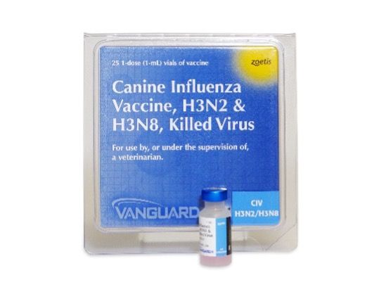 This bivalent canine flu vaccine by Zoetis effectively protects canines against both highly contagious H3N2 and H3N8 strains of canine influenza virus (CIV). This vaccine is approved for use in healthy dogs age 8 weeks and older. A study examining efficacy revealed that the vaccine not only protected dogs from disease, but also appeared to assist in decreasing the number of days for shedding the CIV H3N2 virus. This convenient vaccine protects dogs from both known CIV strains, thus, helping to protect canines overall in the community by increasing herd immunity. Dogs should initially receive 2 doses administered 3 weeks apart. The need for an annual booster vaccination has not yet been established; consultation with a veterinarian is recommended. Available in 25 x 1-dose packages.