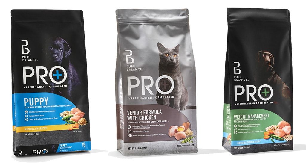Launched by Walmart, this veterinarian-formulated pet food line for dogs and cats complements the 9-year-old Pure Balance brand. Deemed “super-premium,” the 9 new diets are made with either chicken, salmon, or turkey as the first ingredient. This formula contains natural ingredients, plus added vitamins, minerals, and other nutrients, and is free of artificial colors, flavors, or preservatives. The food line includes Pro+: Puppy, Senior Dog, Weight Management for Dogs, Weight Management for Cats, Small Breed for Dogs, Large Breed for Dogs, Kitten (wet and dry), Senior Cat, Sensitive Skin & Stomach for Cats.