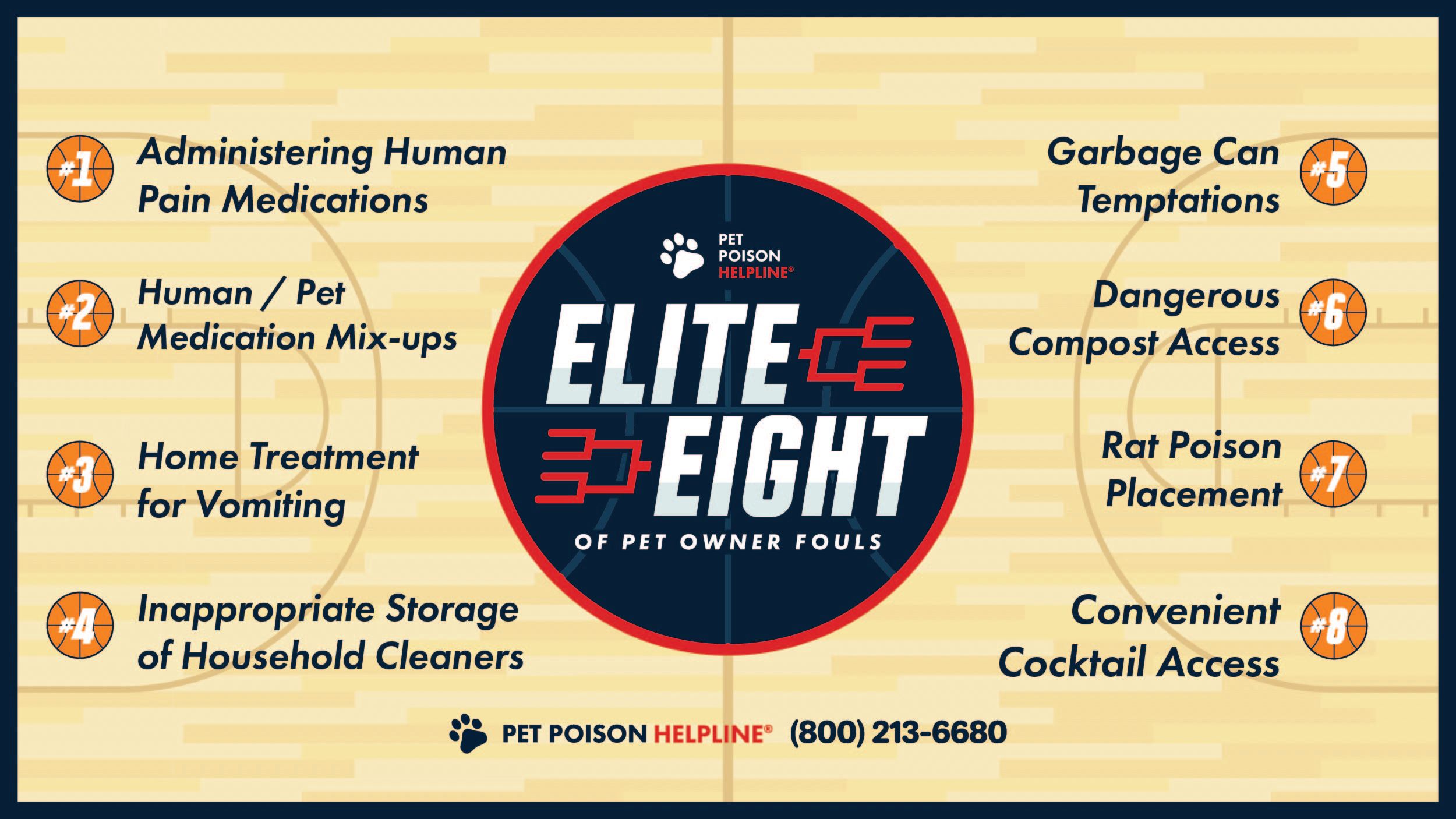 Pet Poison Helpline kicked of Pet Poison Prevention Month by sharing its top 8 pet owner fouls to help veterinary teams educate clients on what is safe for pets to ingest or be given, and what is not. The experts at Pet Poison Helpline analyzed case data to create this list of Elite 8 Pet Owner Fouls.