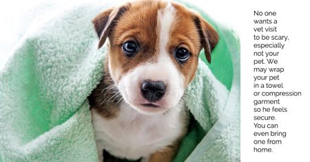 Click to enlarge image. Credit: Getty Images, Adobe SparkText-only tweet: No one wants a vet visit to be scary, especially not your pet. We may wrap your pet in a towel or compression garment so he feels secure.