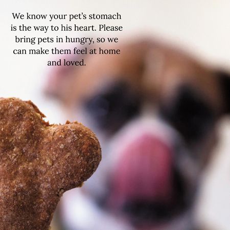 Click to enlarge image. Credit: Getty Images, Adobe SparkText-only tweet: We know your pet's stomach is the way to his heart. Please bring him in hungry, so we can make him feel at home.