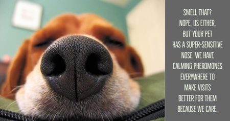 Click to enlarge image. Credit: Getty Images, Adobe SparkText-only tweet: Smell that? Nope, us either, but your pet has a super-sensitive nose. We have calming pheromones everywhere to make visits better for them.