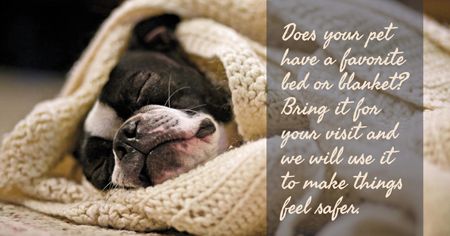 Click to enlarge image. Credit: Getty Images, Adobe SparkText-only tweet: Does your pet have a favorite bed or blanket? Bring it for your visit and we will use it to make things feel safer.