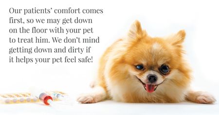 Click to enlarge image. Credit: Shutterstock.com, Adobe SparkText-only tweet: Let's make this all about that pet! Our patients' comfort and safety come first, so we may get down on the floor with your pet to treat him.