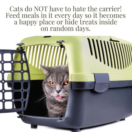 Click to enlarge image. Credit: Getty Images, Adobe SparkText-only tweet: Cats do NOT have to hate their carrier! Feed meals in it every day so it becomes a happy place.