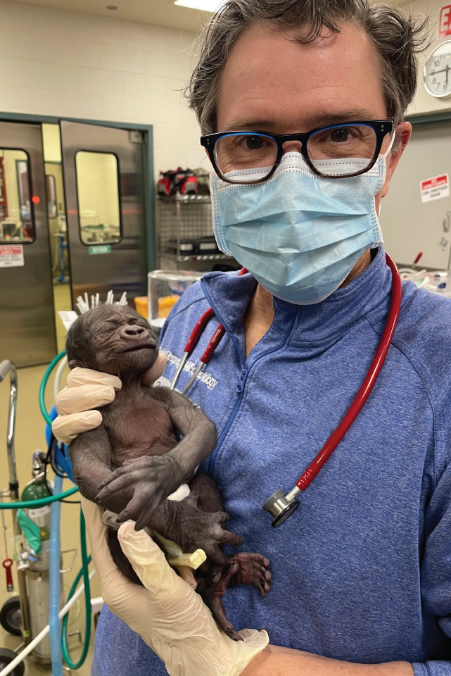 Because she was born 4-6 weeks early and required immediate intervention, the Zoo brought in Robert Ursprung, MD, neonatologist and national director of quality and safety for neonatology. Ursprung helped the zoo’s team with resuscitation and stabilization, radiographs, serial examinations, and respiratory support and provided consultations with the staff to help optimize the nutritional strategy, including oral feedings, and temperature guidelines.