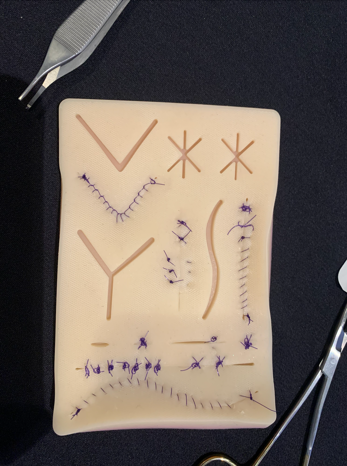 One of the highlights of my experience was attending a suture lab where I received hands-on instruction of various suture patterns and then practice it on model skin. After the lab, I spoke with the representative for the lab’s sponsor, PRN Pharmacal, who ended up gifting our group practice sets and suture to take home.