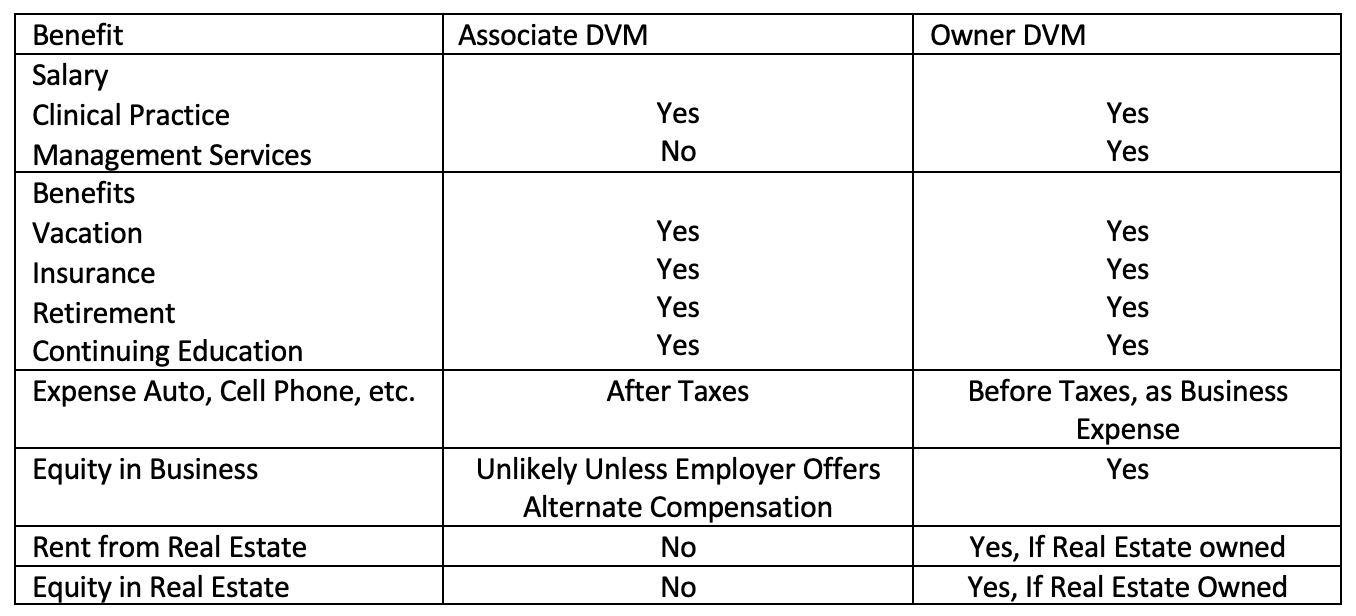 In a 2019 report by the California Veterinary Medical Association,1 veterinarian owners reported higher wages than employed veterinarians with 38% of owners earning greater than $161,000 per year compared to only 29% of associates reporting similar wages. And more veterinarian owners reported increased gross revenue (money generated before subtracting expenses) and increased profit (money available to pay owner after paying expenses) in 2019 than in previous study years.