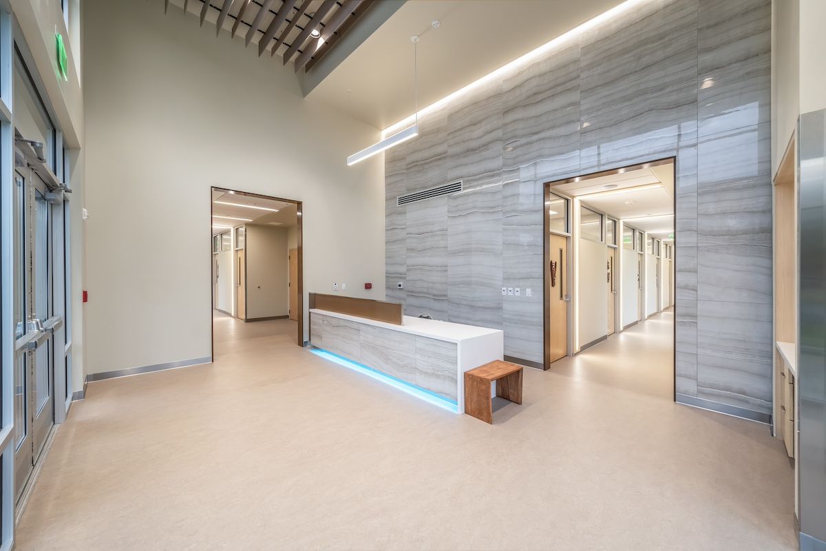 Pure Paws Veterinary Care, our final 2024 merit winner, renovated the first floor of a 9-floor high-rise building in the middle of New York City. The team focused on a clean and simple design featuring ceiling treatments and a tile focal point at the coffee station. They took inspiration from the colors of the Hudson River to provide a tranquil place for clients and their pets on one of New York’s busiest streets.