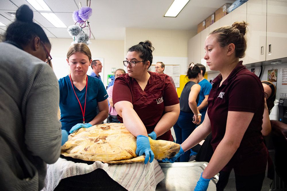 CVM Faculty, staff, and students through the GCAHFS Gulf Coast Aquatic Health Program play a key role in the rehabilitation of these marine animals regularly. For the school’s students, they are exposed to these procedures and research opportunities through first-hand experience.