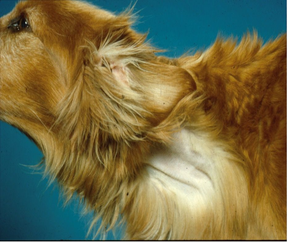 Signs of elevated right heart pressures are consistently present in patients with clinically significant pericardial disease. Jugular venous distention (Figure 2) or positive hepatojugular reflux are invariably present, but commonly overlooked. Heart sound intensity is frequently diminished. Lung sounds may be diminished if pleural effusion is present. Other auscultatory abnormalities (gallop rhythms, cardiac murmurs, arrhythmias) are very uncommon. Dogs with left atrial tears secondary to chronic degenerative valvular disease will have a systolic murmur that may decrease in intensity when compared to previous examinations. Hepatomegaly and free abdominal fluid may be found. If the disease is chronic, significant weight loss may be observed.
