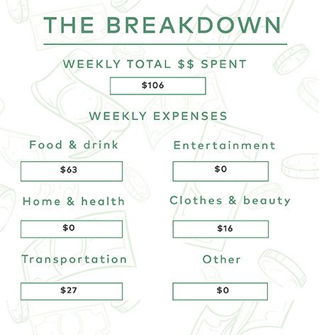 Here's a look at my spending in a week. Daily and weekly totals have been rounded to the nearest dollar.