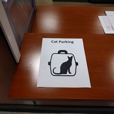 Give veterinary clients a place above the floor to plant their cat carrier, like this counter at reception. (All photos courtesy of author)
