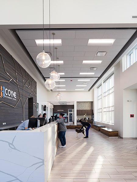 Coyne Veterinary Center's light-colored reception area requires extra upkeep to keep it looking spiffy. | Photos courtesy of Paul Strabbing, Paul Strabbing Photography