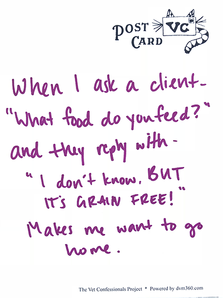 You've probably had many awkward encounters discussing pet nutrition with veterinary clients (as evidenced by some of the wild stories we gathered from social media). So, gut check: does the phrase “grain-free diet” make you shudder ... or does it feel like an opportunity? At least a few of you out there are clearly feeling the love for overweight pets-regardless of what you tell their owners.