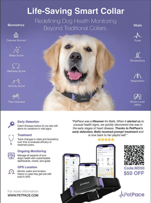 “It is a dog's natural instinct to mask their pain and discomfort until the disease has progressed,” said Asaf Dagan, DVM, DAVBP, CVA, and co-founder of PetPace, in a company release. “PetPace’s proprietary continuous monitoring of critical biometrics enables the early detection of health problems that may have otherwise gone unnoticed. Other smart collars measure only a few vital signs, which are insufficient to accurately determine a dog’s overall wellness or early warning signs.”1