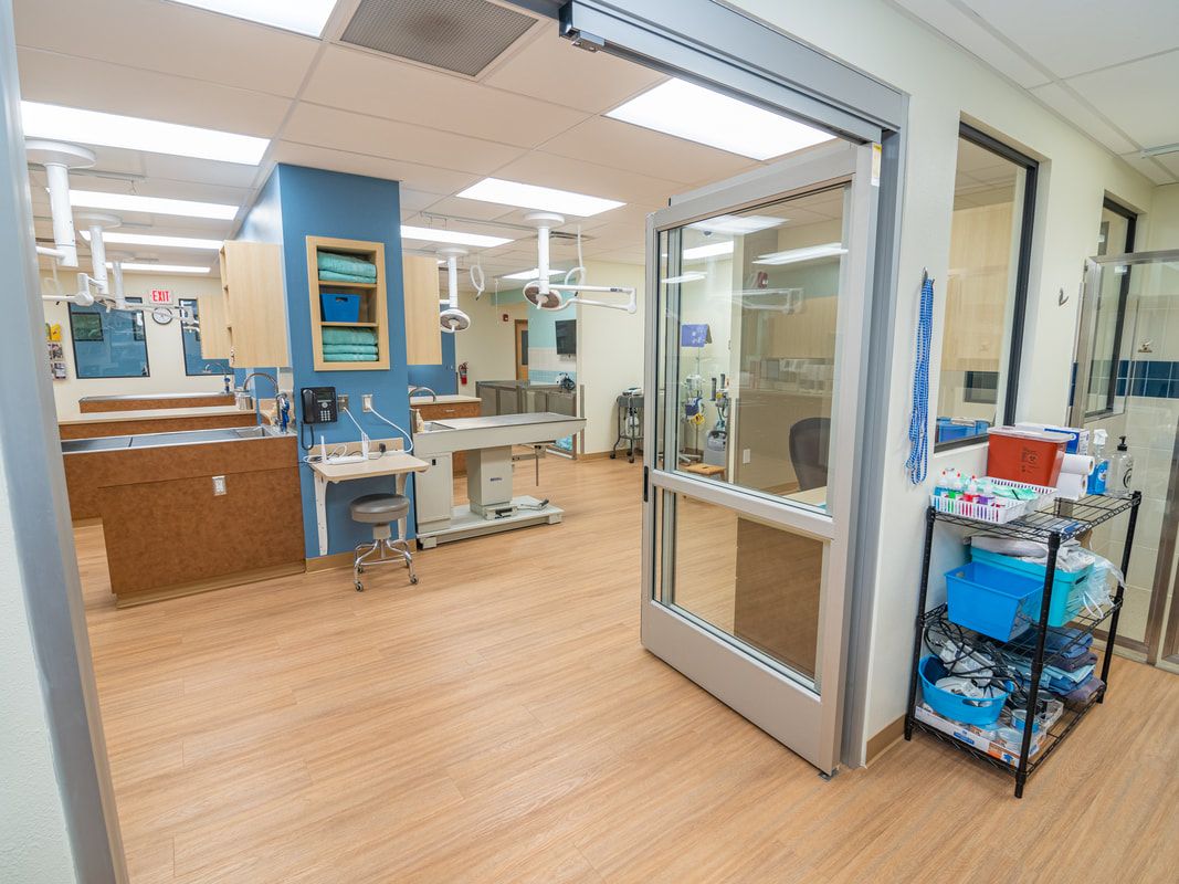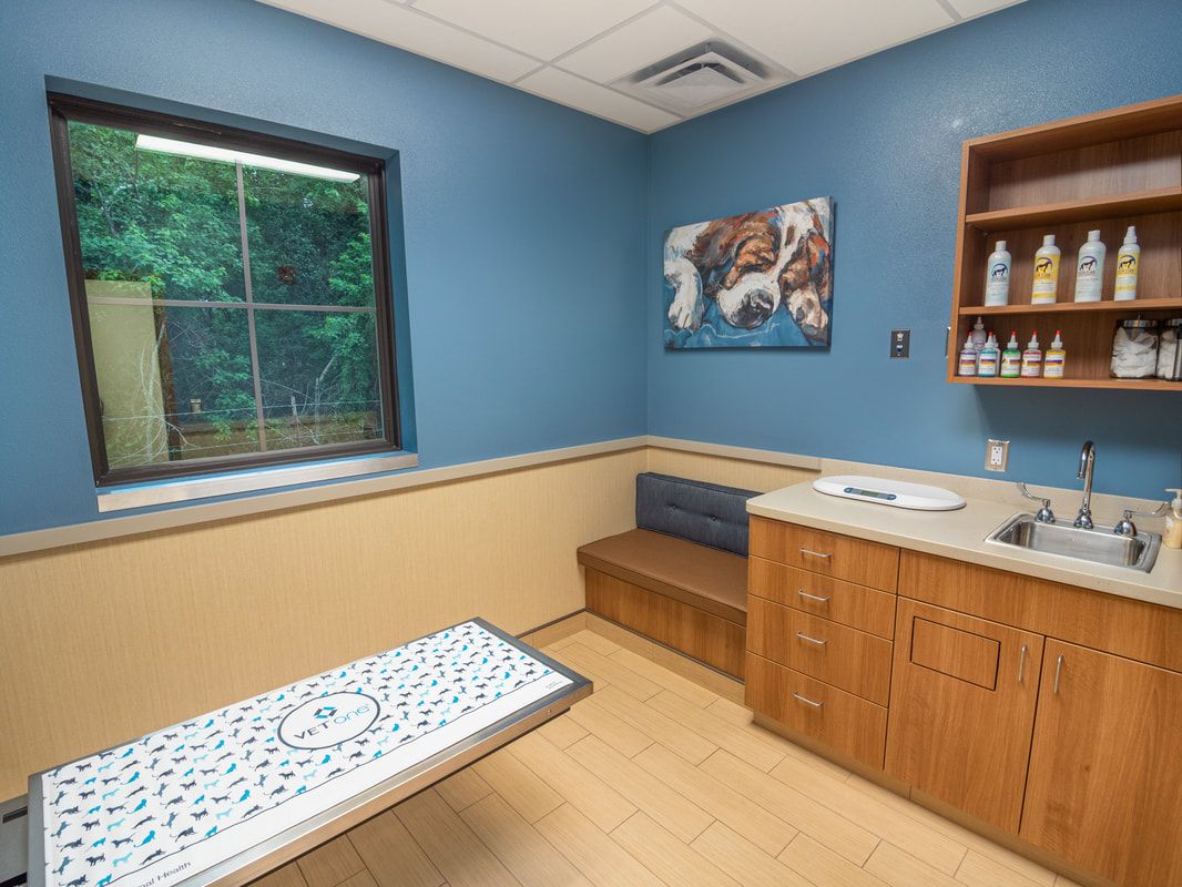 At least 6 exam rooms, plus 1 for comfort and consultation. Three of those rooms include a lift table for handling larger dogs.